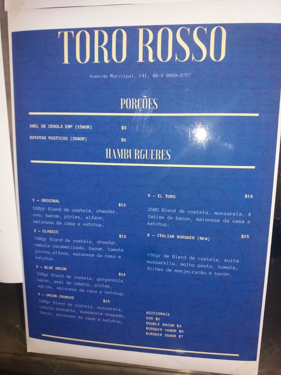 Welcome to Toro Rosso Meats, a vibrant hamburger restaurant and chop bar located in the charming city of Turvo, Brazil. Nestled at Av. Municipal, 141, this culinary gem is renowned for its mouthwatering burgers made from high-quality, grilled-to-perfection meats. Customers rave about the succulent flavors and premium cuts that define the Toro Rosso experience, ensuring you won't forget your visit.